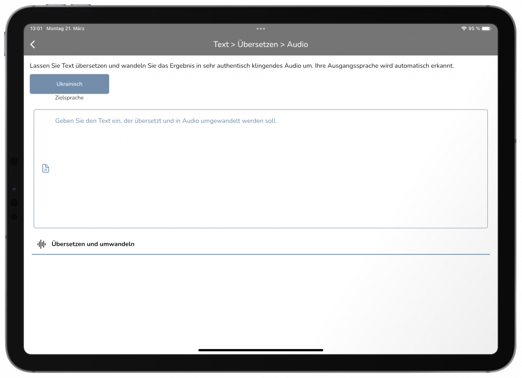 Seit heute ist Ukrainisch als authentische Sprachausgabe übrigens auch in Let Us Listen verfügbar! Damit könnten Nutzer*innen von hyFee Drive und hyFee NC die oben beschriebenen Szenarien mit einem kleinen Umweg ebenfalls umsetzen: