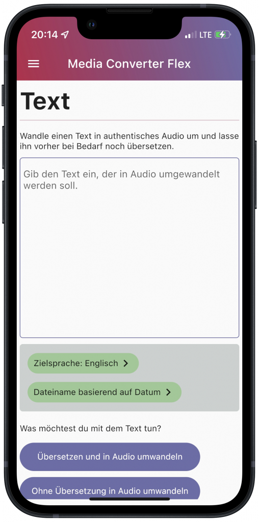 Die PLUS-Variante von Media Converter Flex enthält dauerhaft, ohne In-App-Kauf, alle Features von MCF mit Ausnahme der Text-To-Speech-Funktion, da sich diese Funktion mit einem einmaligen Kaufpreis nicht finanzieren lässt. Für Fans von Einmalkäufen sowie für Schulen ist Media Converter Flex Plus die richtige Wahl, da sie eben dauerhaft ohne Abo die Plus-Features enthält. Der Kaufpreis beträgt einmalig 6,99 €, wobei Schulen von 50 % Bildungsrabatt profitieren können.