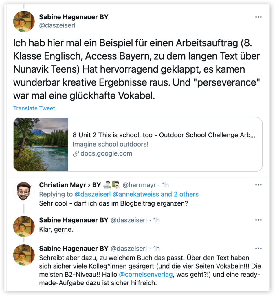 Die Lehrkraft kann über die moodle / mebis Aktivitäten die Eingaben der Schülerinnen und Schüler einsehen, betreuen, beraten und Feedback geben.